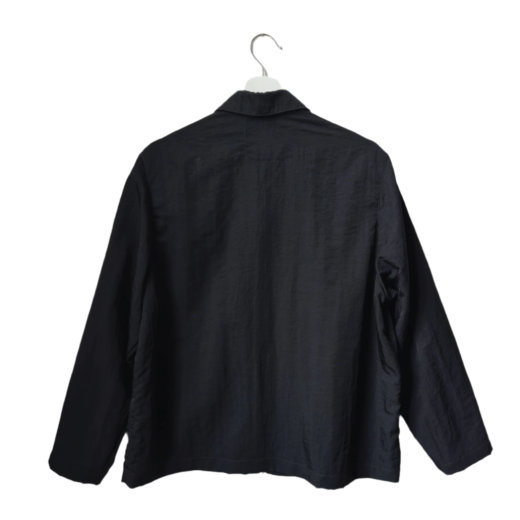Lightweight collared jacket in technical nylon with three pocket design, strap space for clipping, and front titanium zip closure. Made in the Los Angeles, CA.